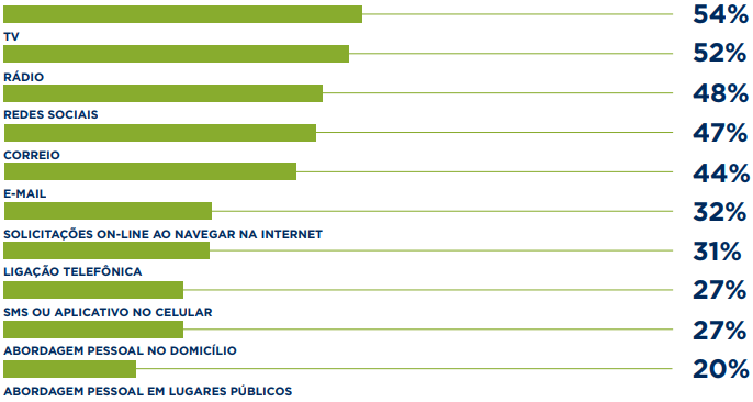 Um fator muito importante a se pensar é onde seria ideal impactar as pessoas e quais os canais utilizados pelas organizações atualmente. Saber quais os locais onde os doadores gostam de ser atingidos é interessante para traçar estratégias de comunicação e entender melhor o público. Converse sobre isso com os clientes e leads e traga dados como esse: