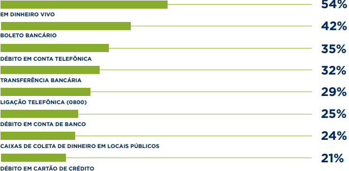 Assim como o local preferido para ser impactado, os respondentes foram questionados sobre o formato que mais gostam de pagar a doação. Acontece que essas respostas podem estar afetadas também pelos meios que a organização disponibiliza. Dá uma olhada nos dados: