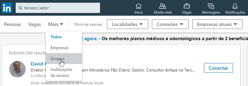 Aperte enter. Realizada a pesquisa, filtre por grupos: