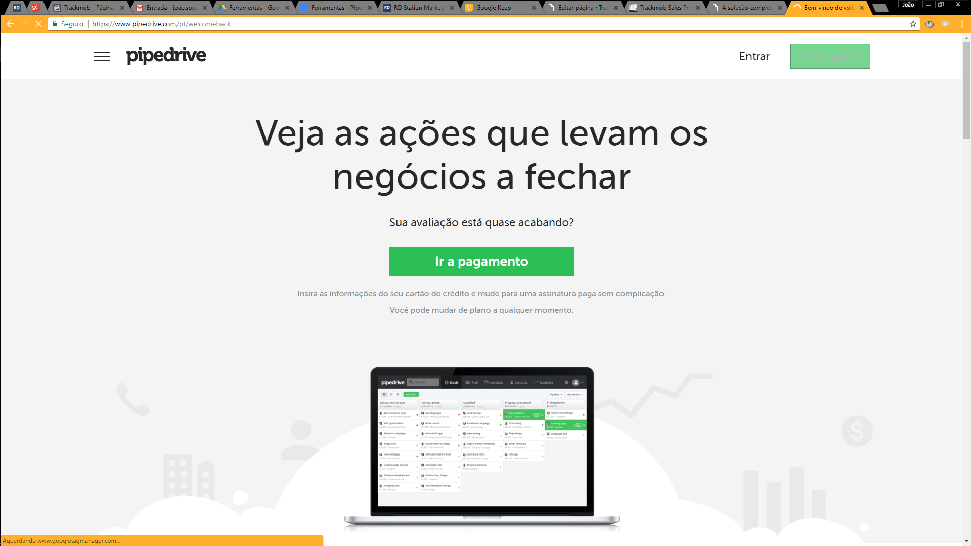 O Pipedrive com certeza será a ferramenta que você mais vai utilizar aqui na Trackmob. É um tipo de Trello voltado à vendas, se tornando extremamente simples, fácil e rápido de se organizar com as ligações que você precisa fazer, além de ter um visual bem favorável.