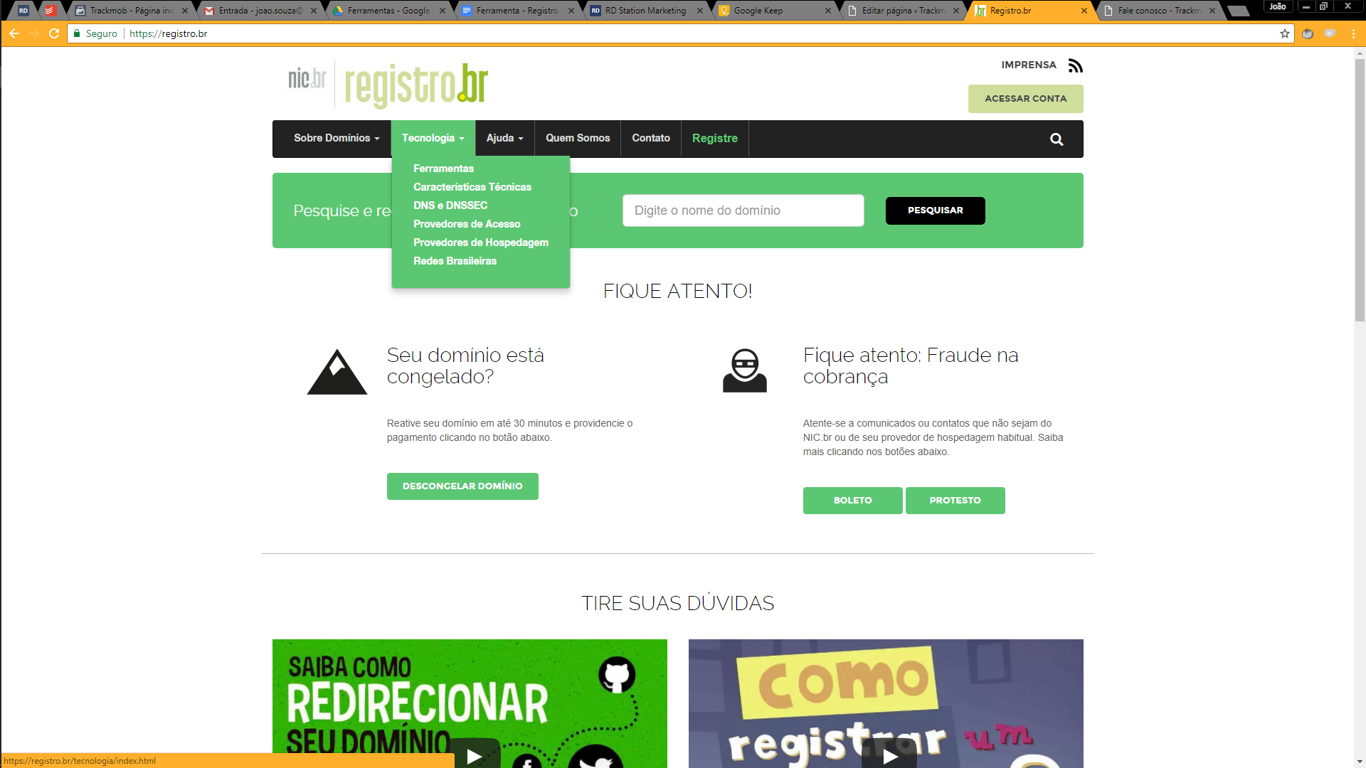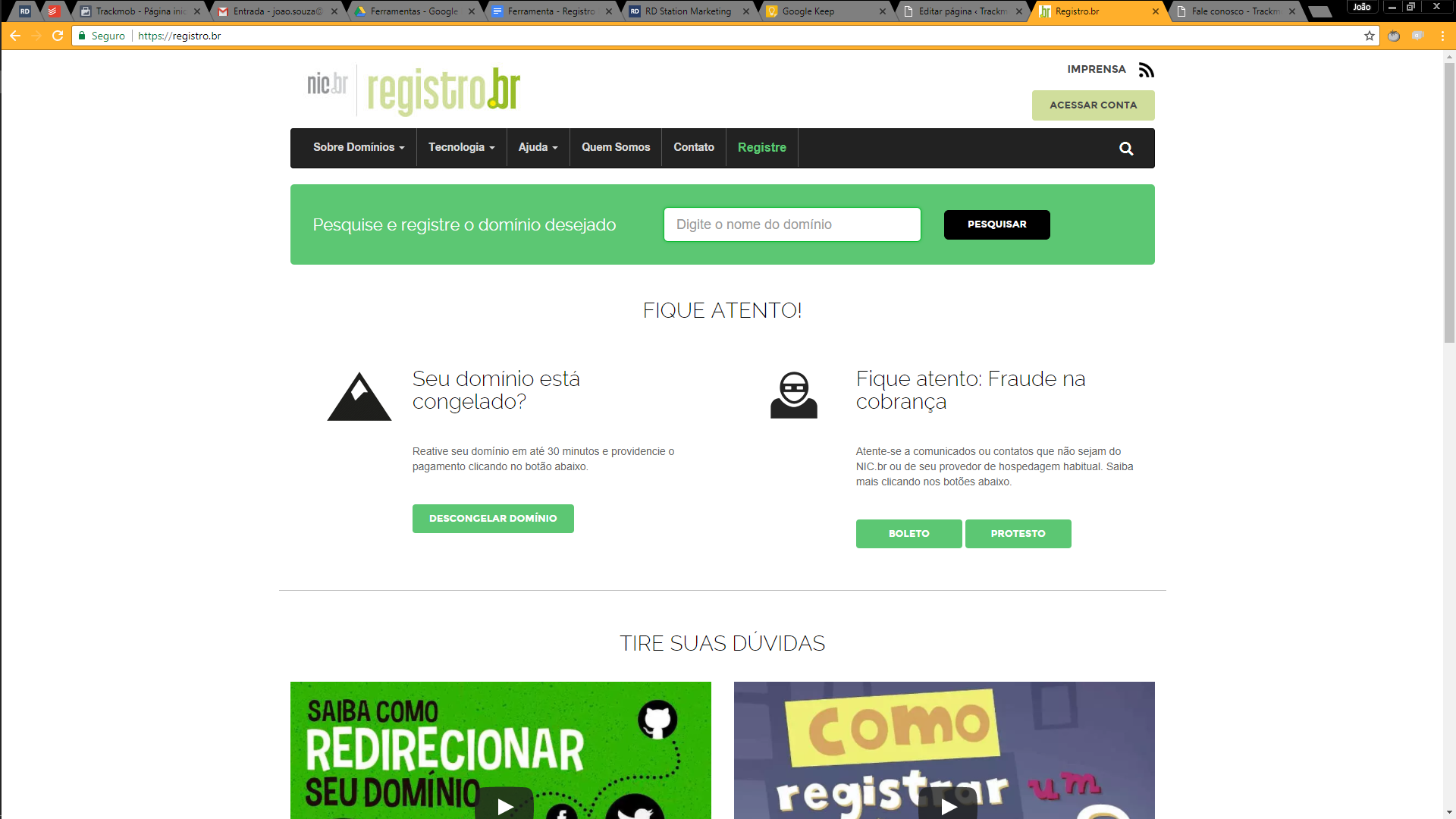 Ao abrir o Registro.br, você vai se deparar com essa imagem: