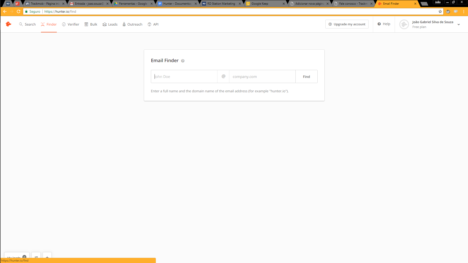 Nessa tela você procura pelos domínios, como explicado no tópico anterior. Para a pesquisa de e-mais com o nome, vá na aba “Finder”